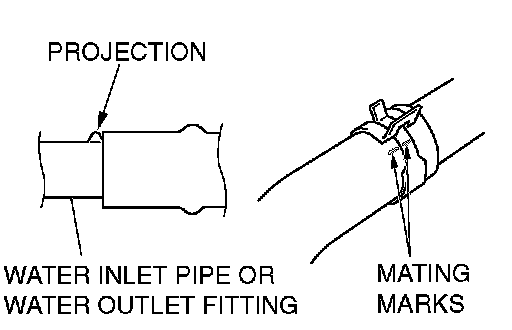 Make mating marks on the radiator hose and the hose clamp. Disconnect the radiator hose.