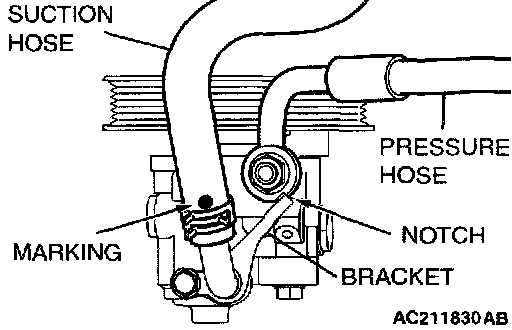 1. Install the pressure hose on pump side so that the notch is fixed with bracket as shown in the illustration.