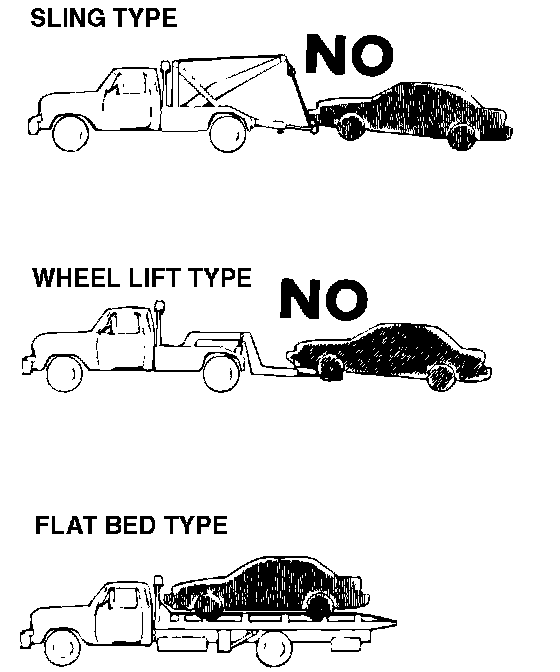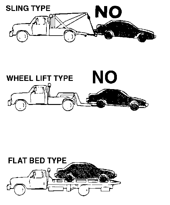 - The vehicle must not be towed by placing only its front wheels on a rolling dolly, because to do so will result in deterioration of the viscous coupling and in the viscous coupling causing the vehicle to jump forward suddenly.