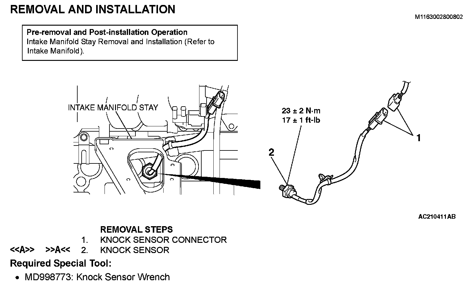 KNOCK SENSORREMOVAL AND INSTALLATION