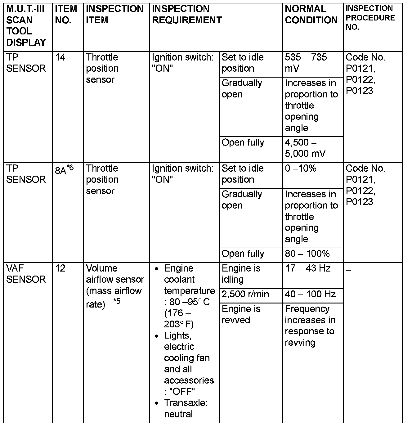 NOTE: *5: In a new vehicle [driven approximately 500 km (311 mile) or less], the volume airflow sensor output frequency is sometimes 10% higher than the standard frequency.