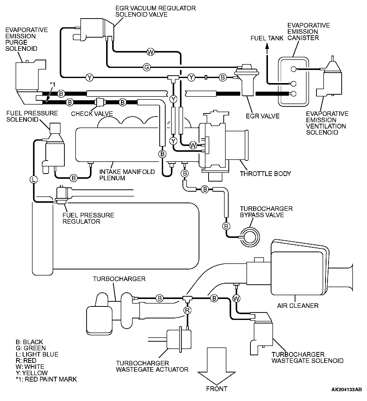 1. Using the VACUUM HOSE ROUTING diagram as a guide, check that the vacuum hoses are correctly connected.