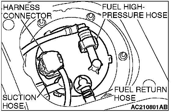 4. Disconnect fuel high-pressure hose, suction hose and fuel return hose.