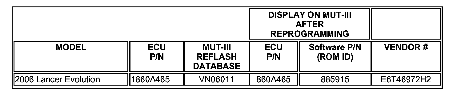 7. After reprogramming, the new ECU part number and software part number (ROM ID) will display. Verify that they are the same as those listed below. Note this information.