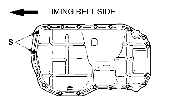 Fit an 8 mm (0.30 inch) long bolt in each of the two holes identified by the letter "S" in the illustration and a 10 mm (0.39 inch) long bolt in each of the remaining 17 holes. Tighten all bolts to the specified torque.