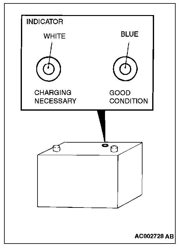 The battery contains a visual test indicator which gives a blue signal when an adequate charge level exists, and a white signal when charging is required.