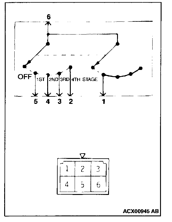 This figure illustrates a complex switch. The continuity between terminals at each position is as indicated in the table.