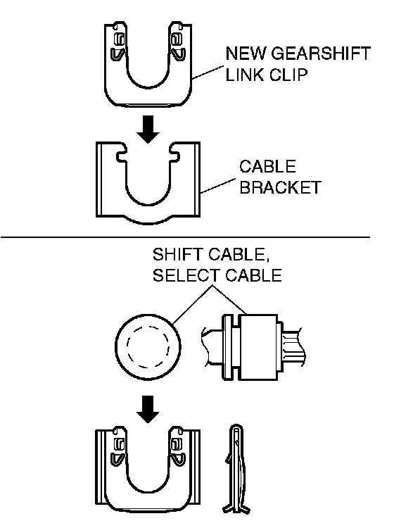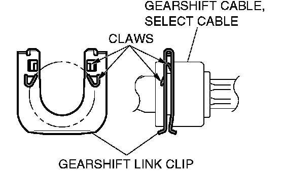 CAUTION: Insert thoroughly the gearshift link clip, shift cable and select cable until they click in place.