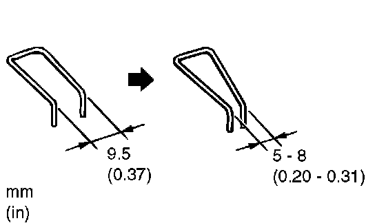 1. Make sure that there is no excessive play at the shift cable end clip. If there is excessive play or the clip is disengaged from the shift cable end, check the clip opening gap. If the gap is more than 9.5 mm (0.37 inch), squeeze the clip until the gap reaches 5 to 8 mm (0.20 to 0.31 inch).