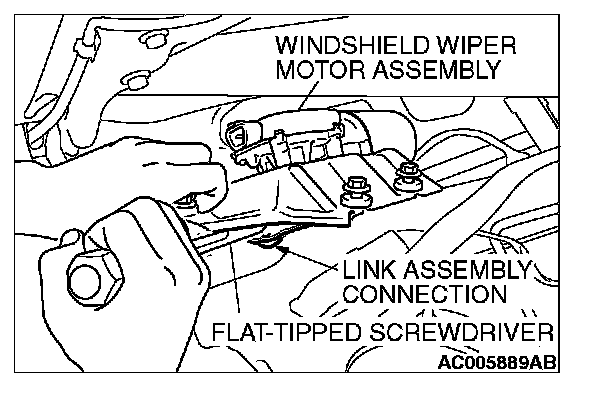 2. Use the flat-tipped screwdriver to disengage the link between the windshield wiper motor assembly and the link assembly to remove the windshield wiper motor assembly.