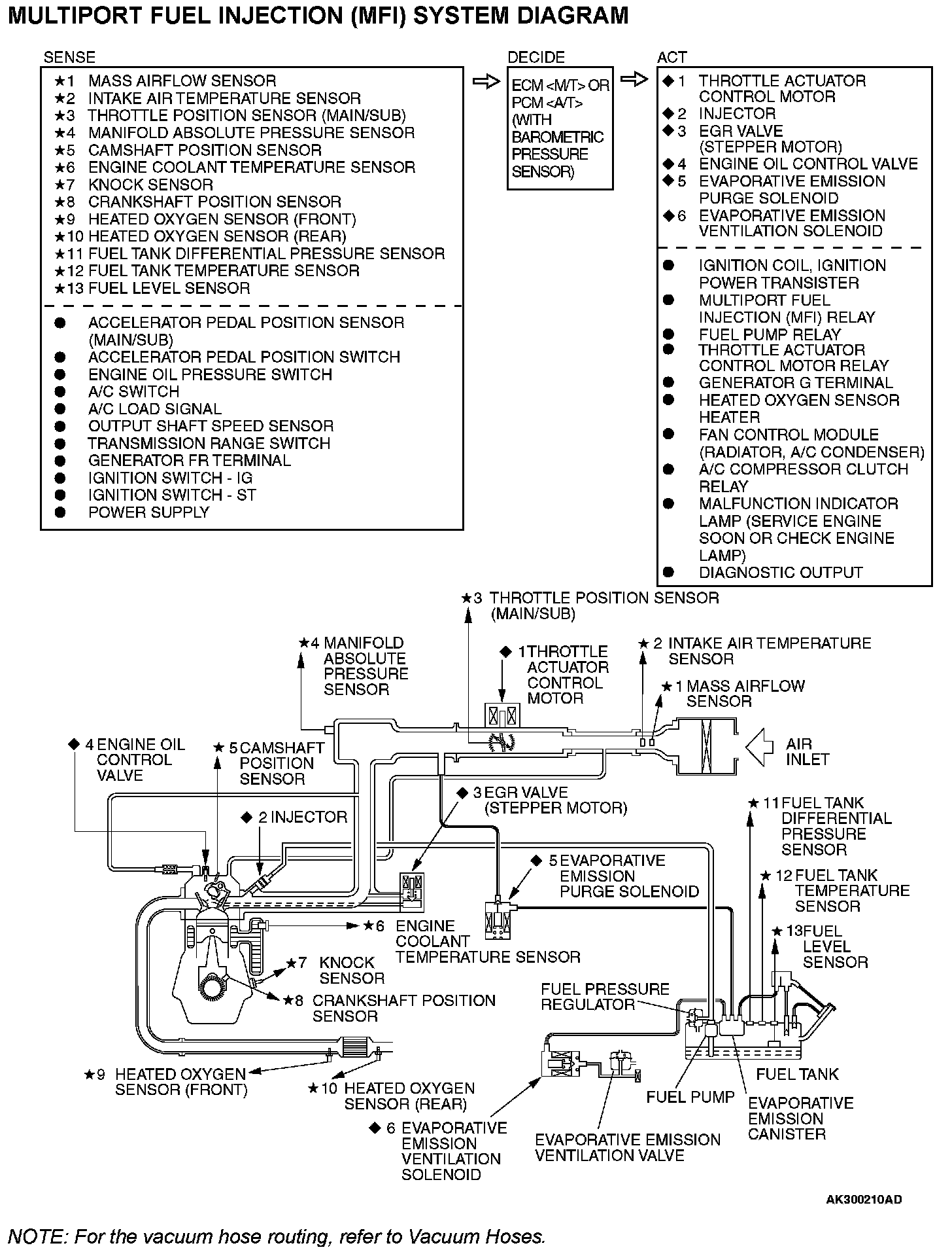 The Multiport Fuel Injection System consists of sensors, actuators and the engine control module (ECM)