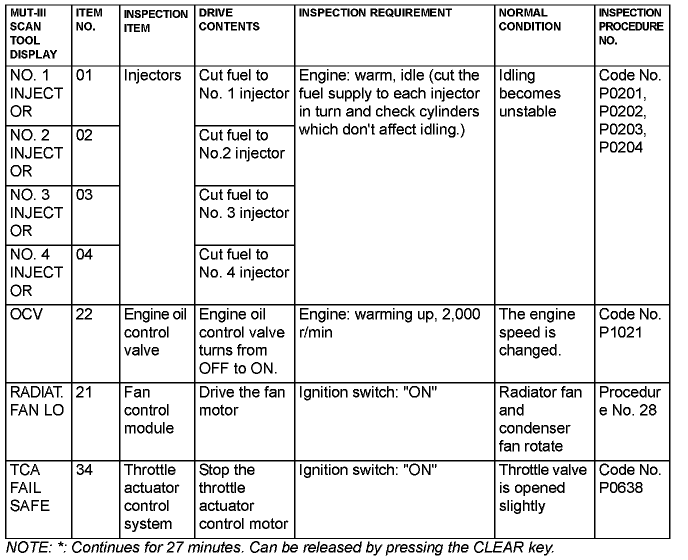 Actuator Test Reference Table Part 2: