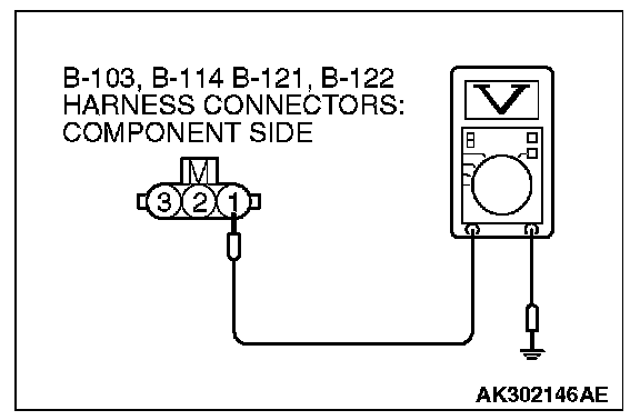 STEP 3. Measure the power supply voltage at ignition coil connectors B-103, B-114, B-121 and B-122.