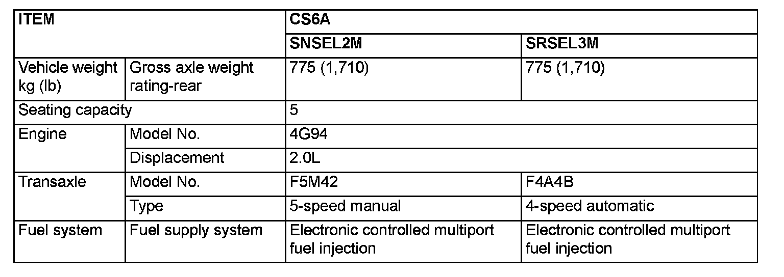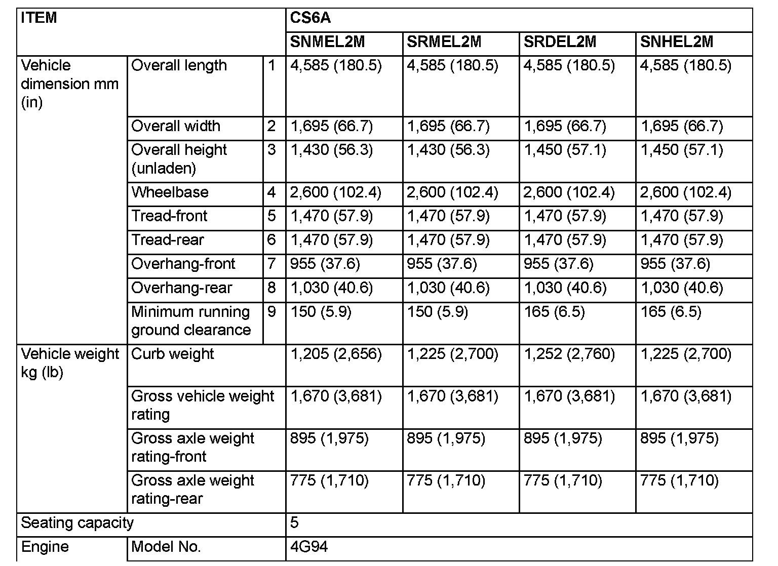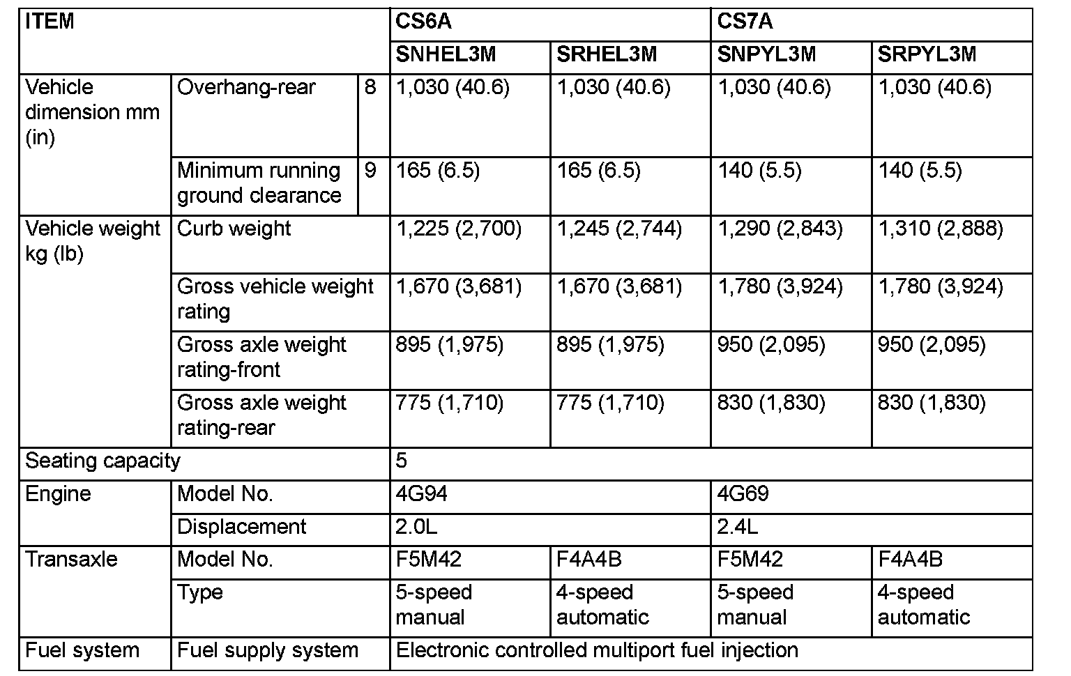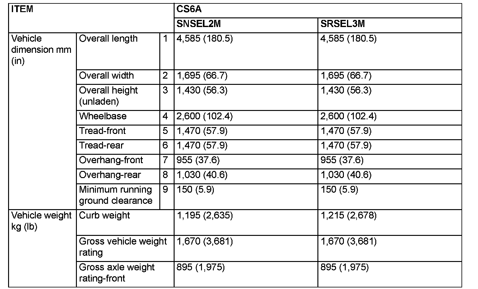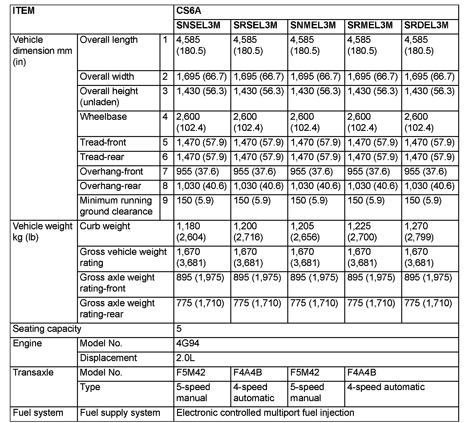GENERAL SPECIFICATIONS VEHICLES FOR CANADA
