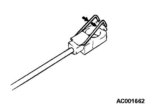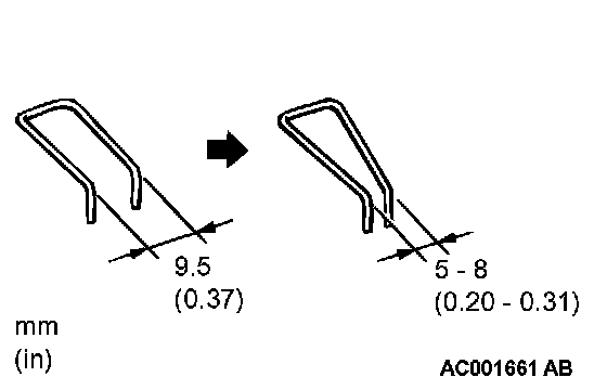 1. Make sure that there is no excessive play at the shift cable end gearshift cable clip. If there is excessive play or the shift cable clip is disengaged from the shift cable end, check the clip opening gap. If the gap is more than 9.5 mm (0.37 inch), squeeze the shift cable clip until the relaxed gap reaches 5 to 8 mm (0.20 to 0.31 inch).