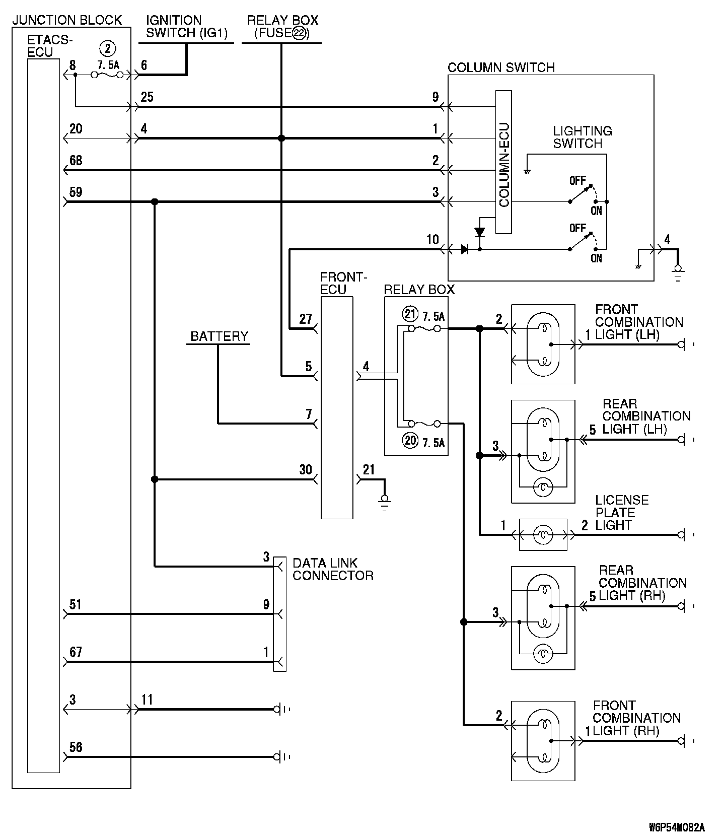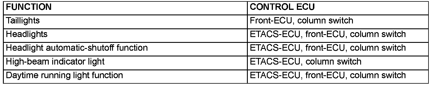 The ETACS-ECU outputs the daytime running light forced-OFF signal to the front-ECU based on the input signal sent via CAN communication. The front-ECU controls illumination and extinction of the daytime running light according to the daytime running light forced-OFF signal.