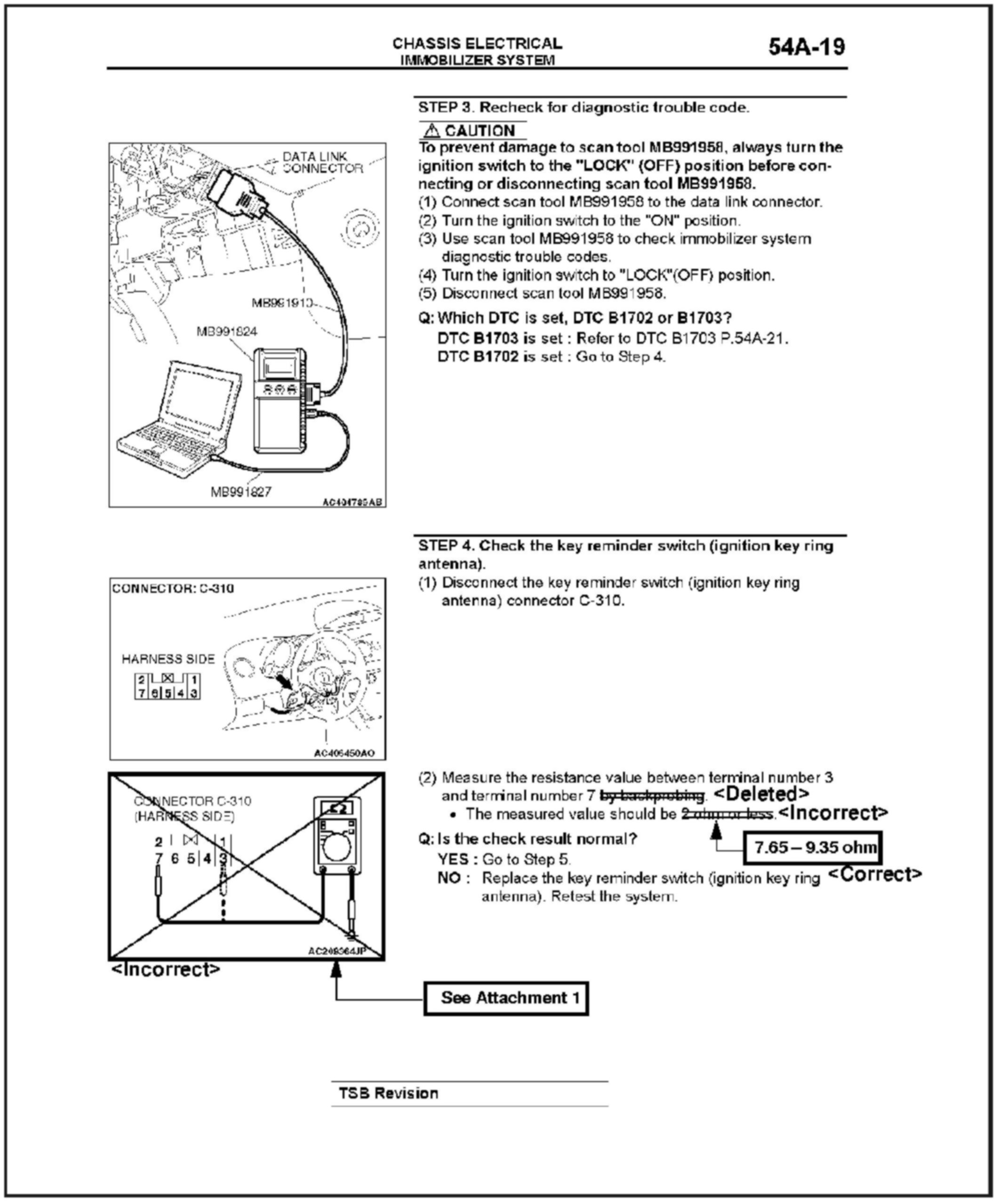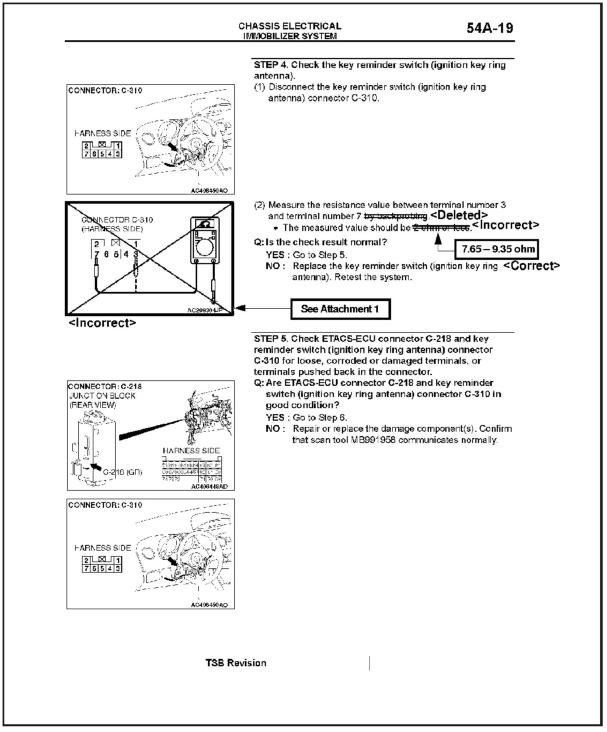 CORRECTED IGNITION KEY RING ANTENNA CHECKING PROCEDURES - SERVICE MANUAL REVISION
