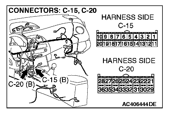 STEP 4. Check A/C-ECU connectors C-15, C-20 and photo sensor connector C-02 for loose, corroded or damaged terminals, or terminals pushed back in the connector.