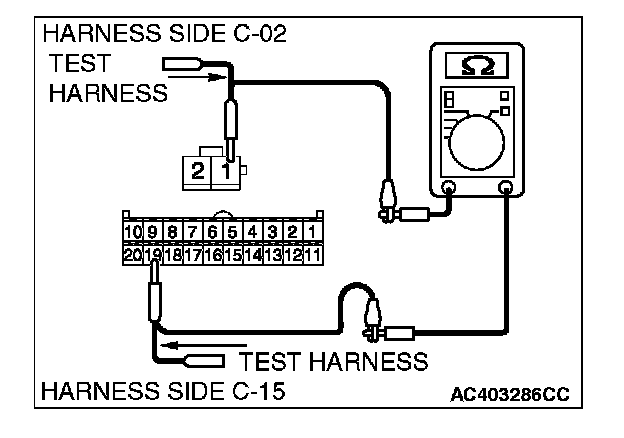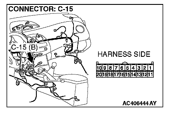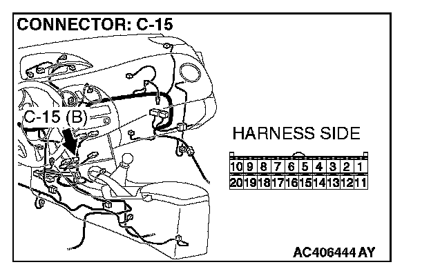 STEP 10. Check the wiring harness between A/C-ECU connector C-15 (terminal 19) and photo sensor connector C-02 (terminal 1).