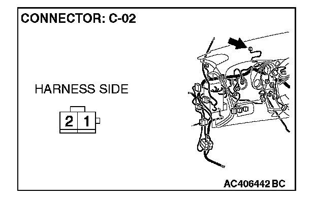 STEP 8. Check the wiring harness between A/C-ECU connector C-20 (terminal 25) and photo sensor connector C-02 (terminal 2).