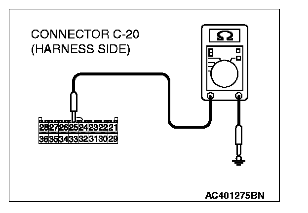 2. Measure the resistance value between terminal 25 and ground