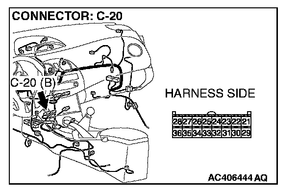 1. Disconnect A/C-ECU connector C-20, and measure the resistance at the wiring harness side.