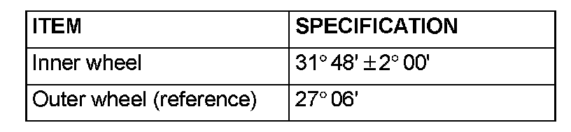 1. Place the front wheel on a turning radius gauge and measure the steering angle.