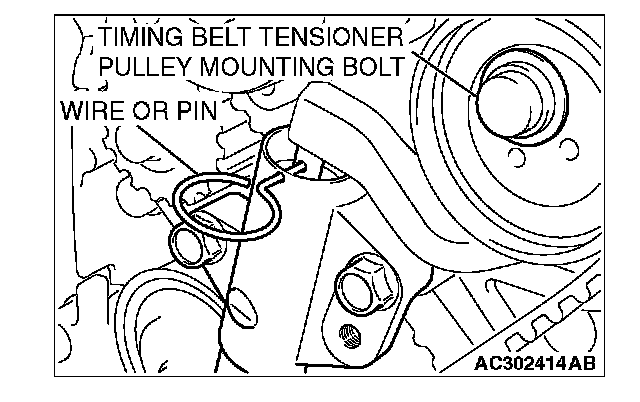 7. Remove the wire or pin inserted to timing belt tensioner adjuster.