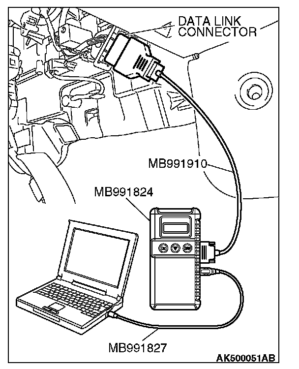 5. Connect special tool MB991910 to the data link connector.