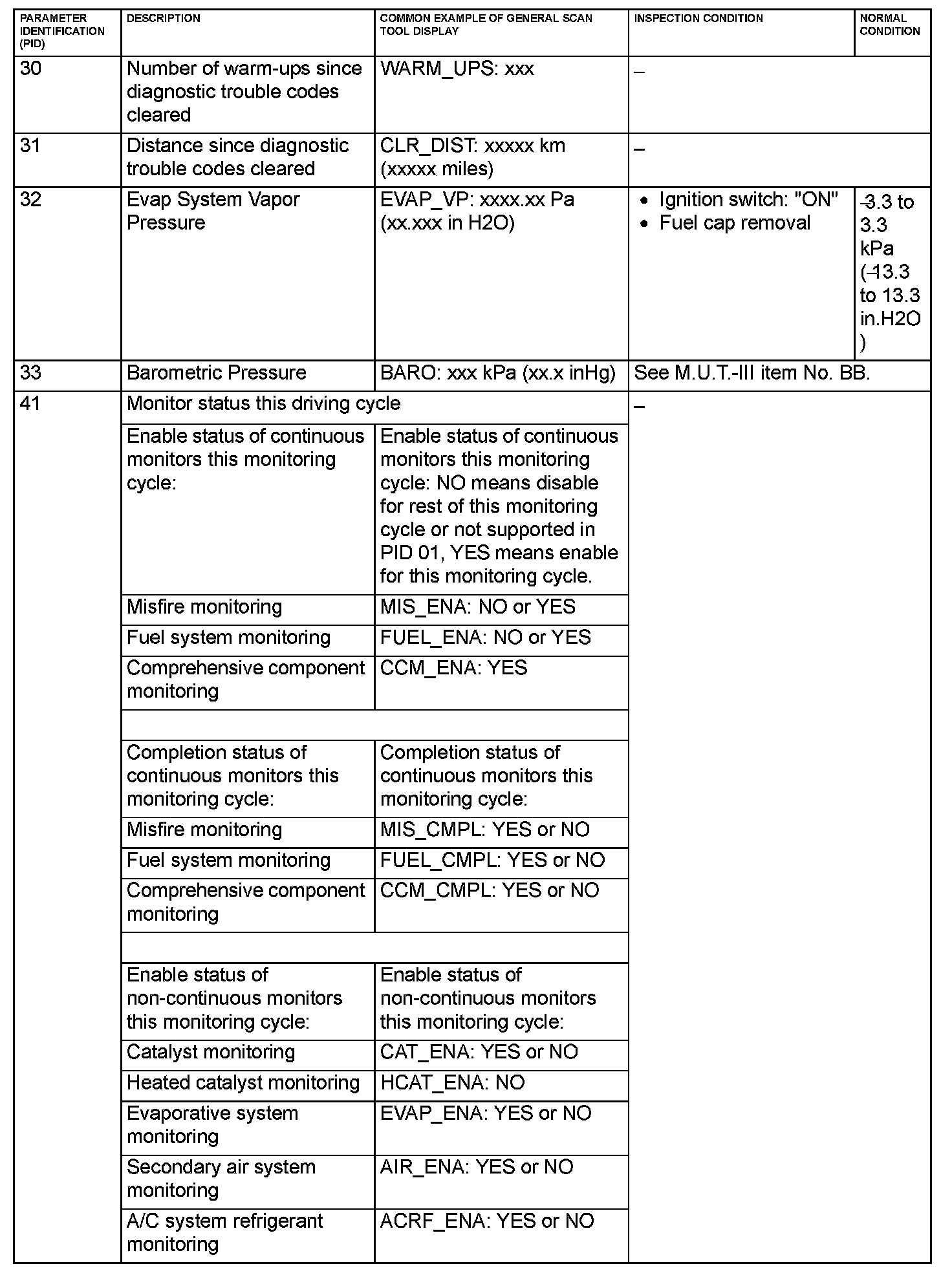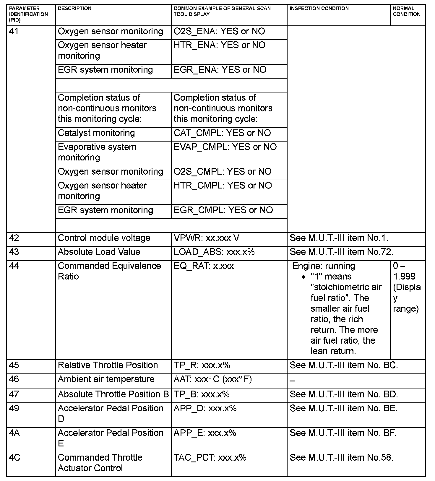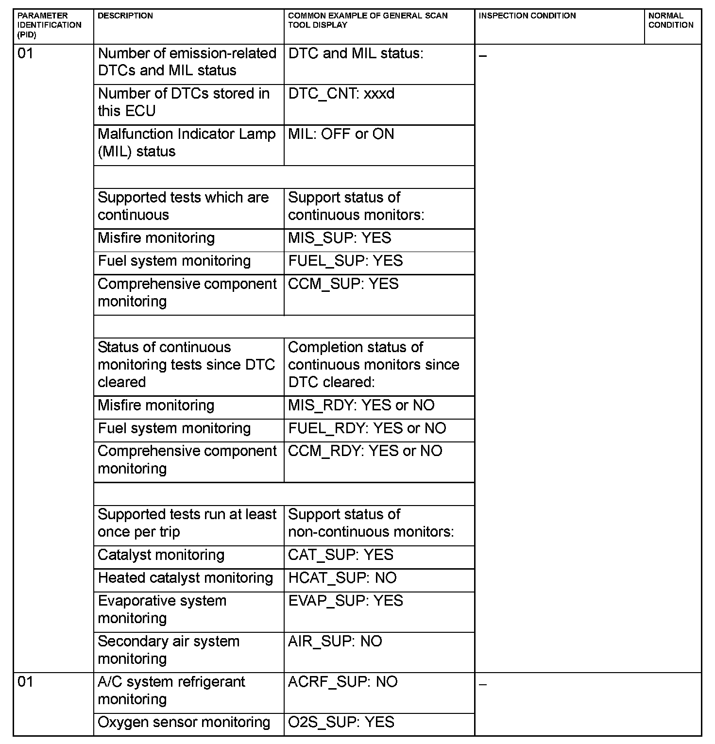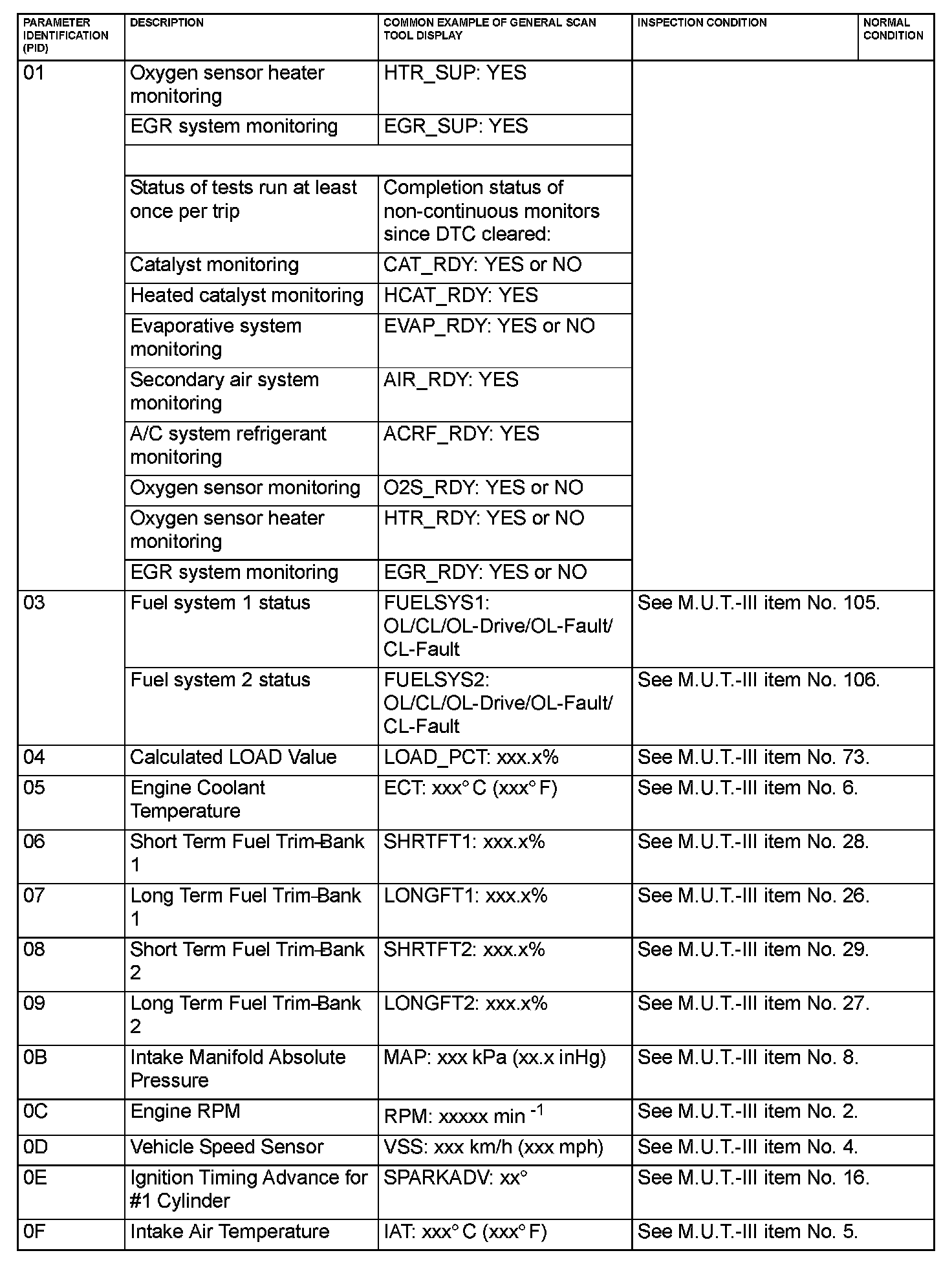 GENERAL SCAN TOOL (GST) MODE 01 REFERENCE TABLEThe purpose of this service of to allow access to current emission-related data values, including analogue inputs and outputs, digital inputs and outputs, and system status information.