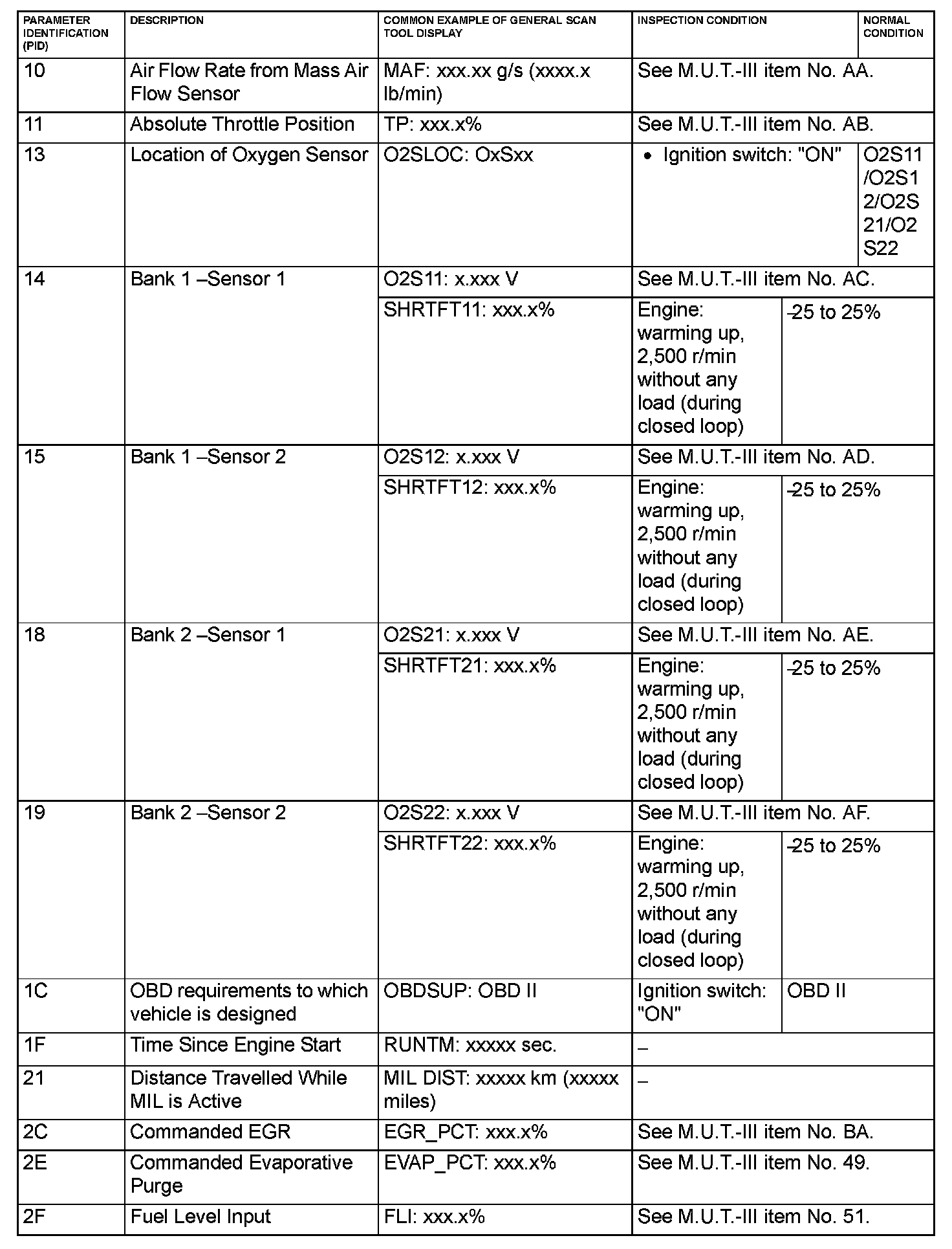 General Scan Tool (GST) Mode 01 Reference Table Part 2: