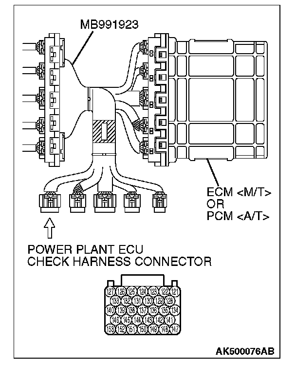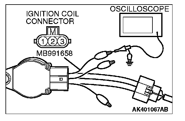 1. Disconnect the ignition coil connector, and connect the test harness special tool (MB991658) between the separated connector.