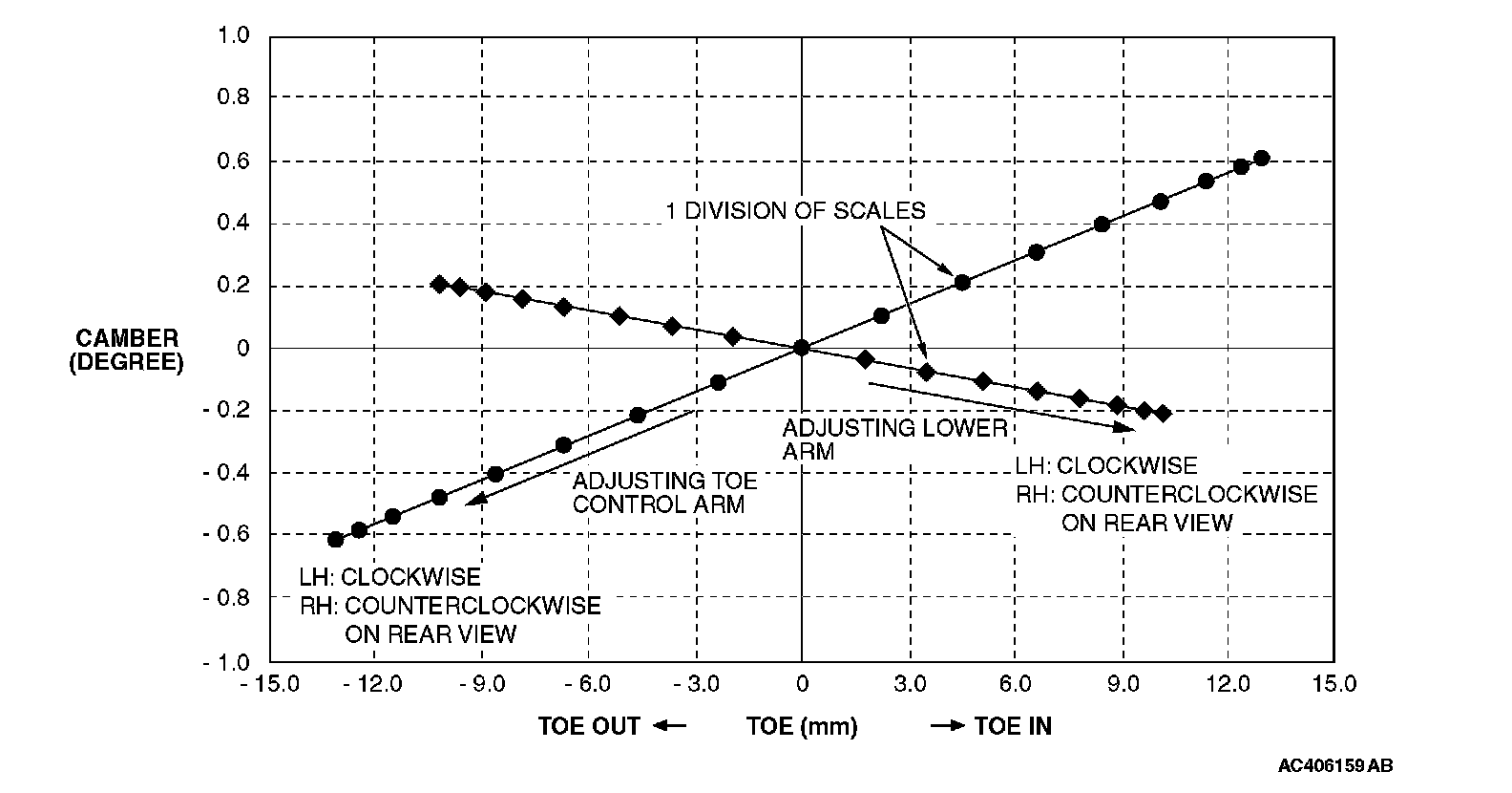 CAMBER AND TOE REFERENCE TABLE: