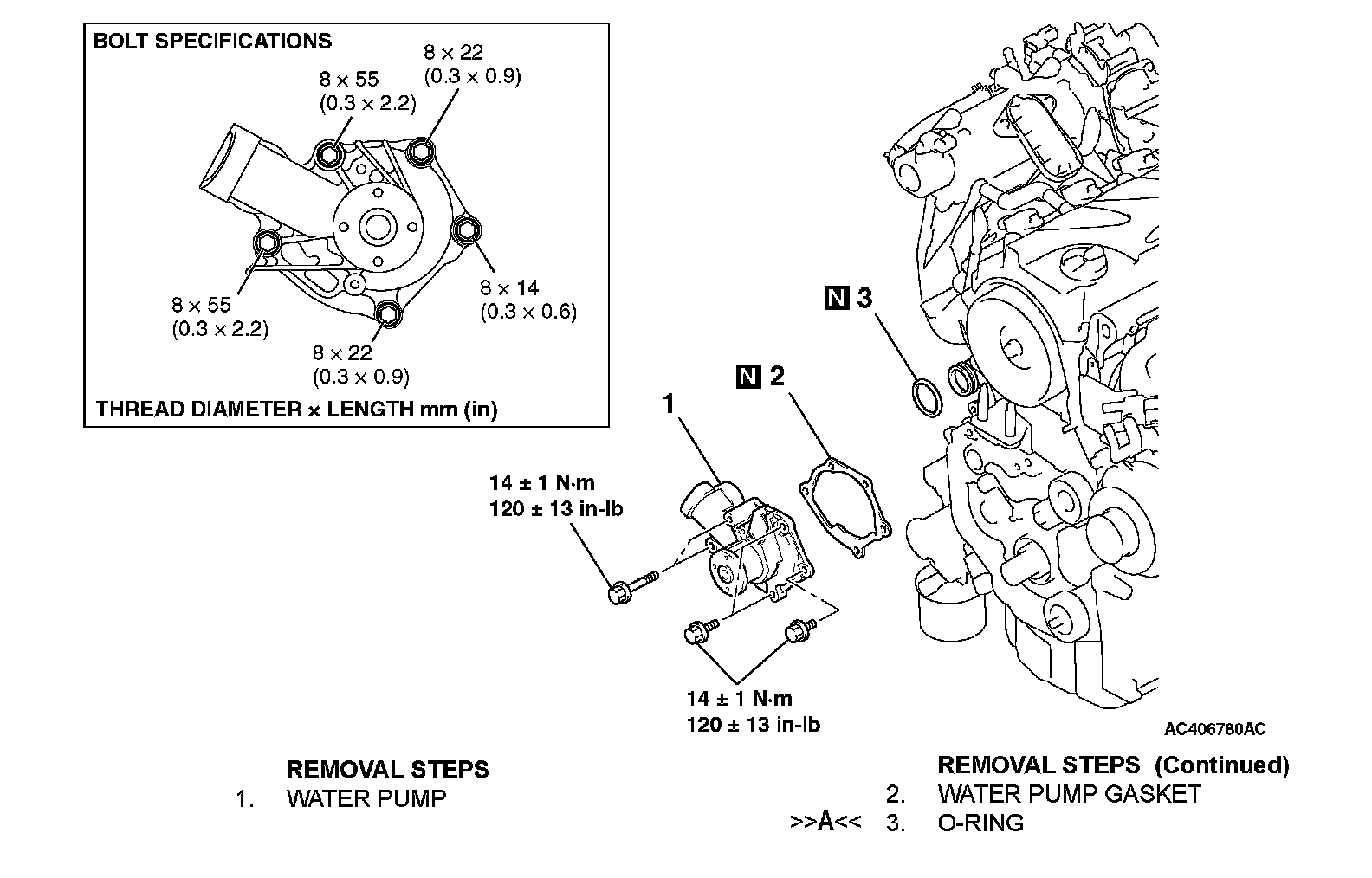 14 ±1 Nm (124 ±8 in-lb)
