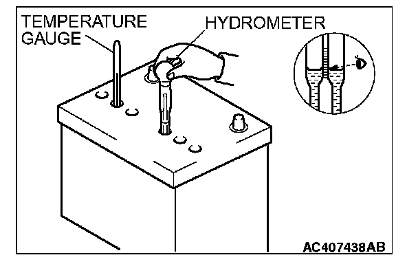 2. Use a hydrometer and temperature gauge to check the specific gravity of the electrolyte.