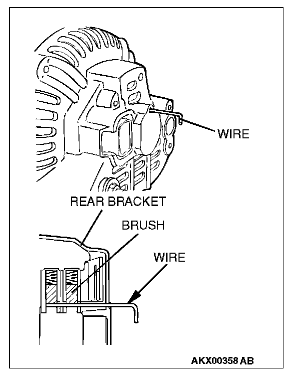 After installing the regulator assembly, insert a wire through the hole provided on the rear bracket while pressing down on the brush, and secure the brush.