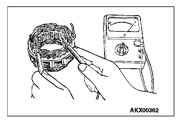 2. Check the continuity between the coil and the core. If there is continuity, replace the stator.