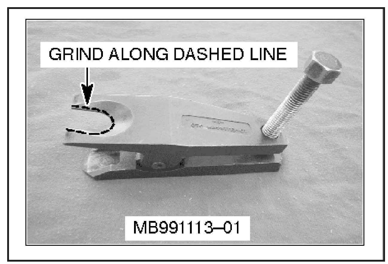 If special tool MB991113-01 - ball joint remover is used, it will need to be modified. Grind the opening, in the area shown, just large enough to go around the ball joint.