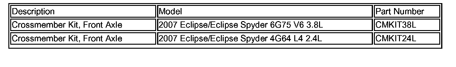 2. Follow the service manual procedure in Group 32 of the 2007 Eclipse/Eclipse Spyder service manual for replacing the crossmember except for the step 5 listed on the following page as it is not necessary to remove the power steering gear and linkage. They can remain in the vehicle during this process.