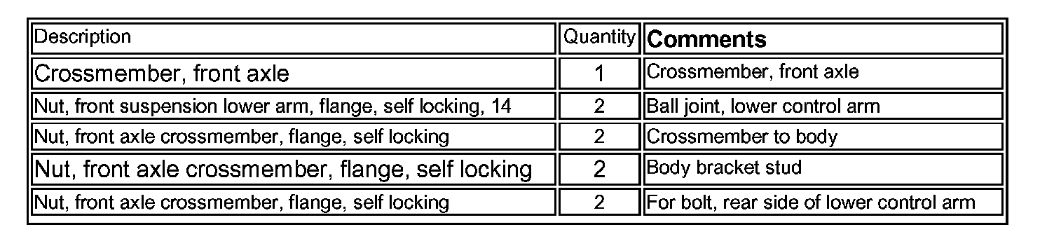 It is not necessary to order parts for this recall. Arrangements will be made to ship the appropriate recall kit to the dealers where inspection has determined that a replacement crossmember is required.