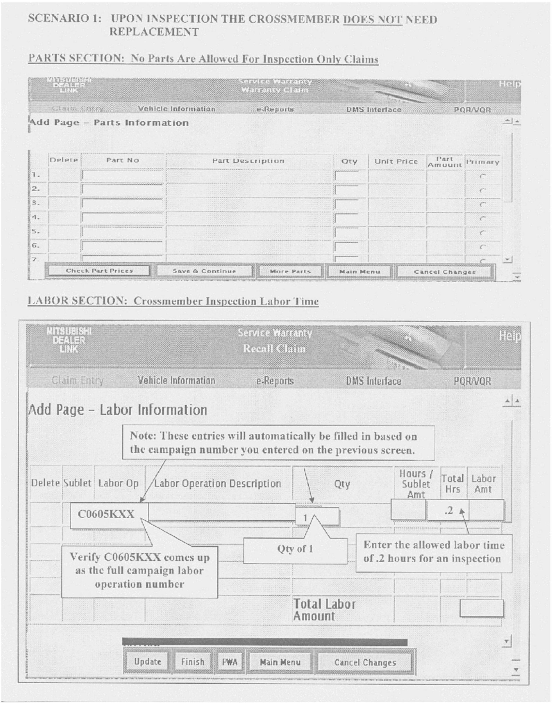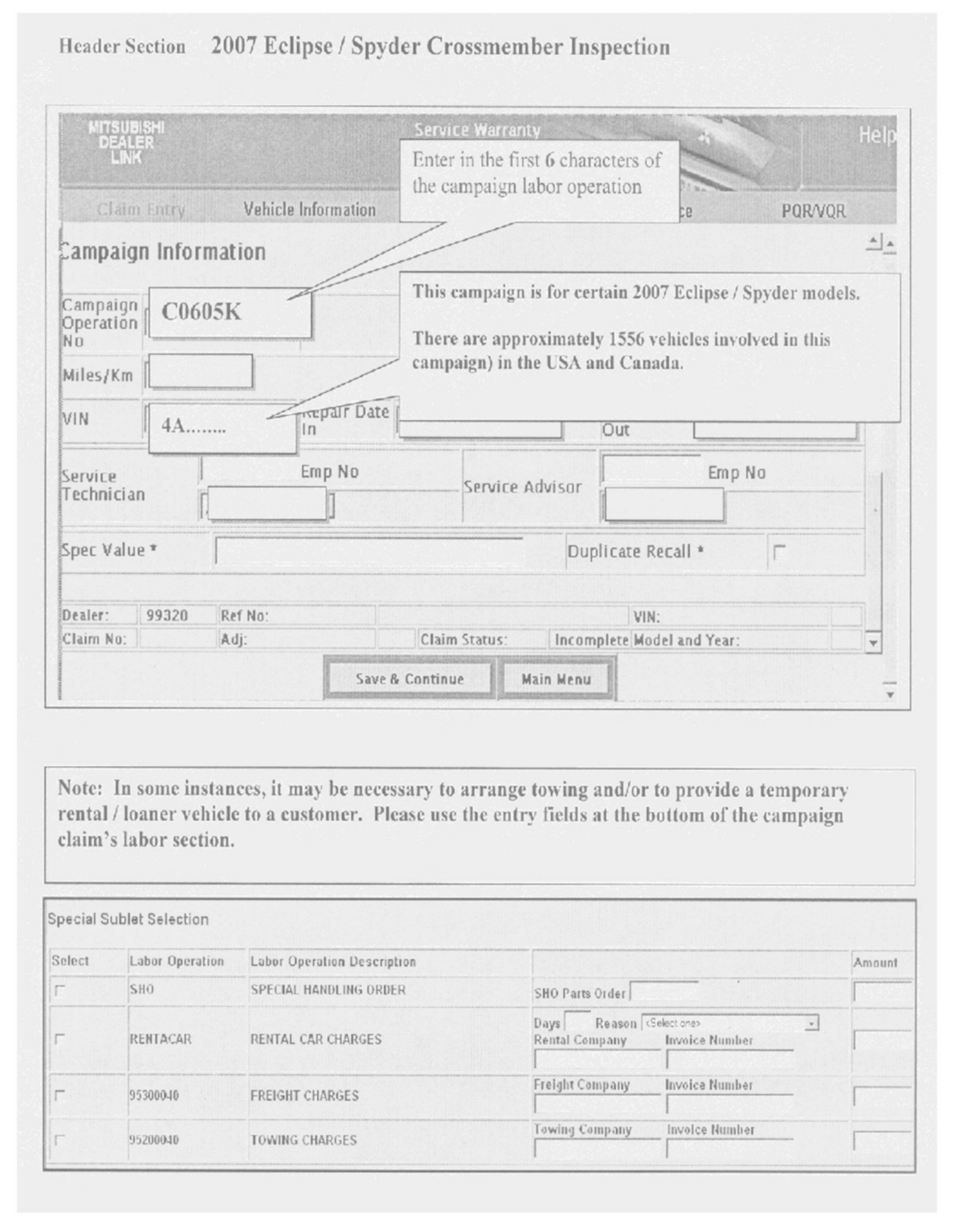 A letter will be sent to all owners of affected vehicles telling them to bring their vehicle to their Mitsubishi Motors dealer to have the crossmember inspected and replaced if needed. A copy of the customer notification letter appears later in this bulletin.