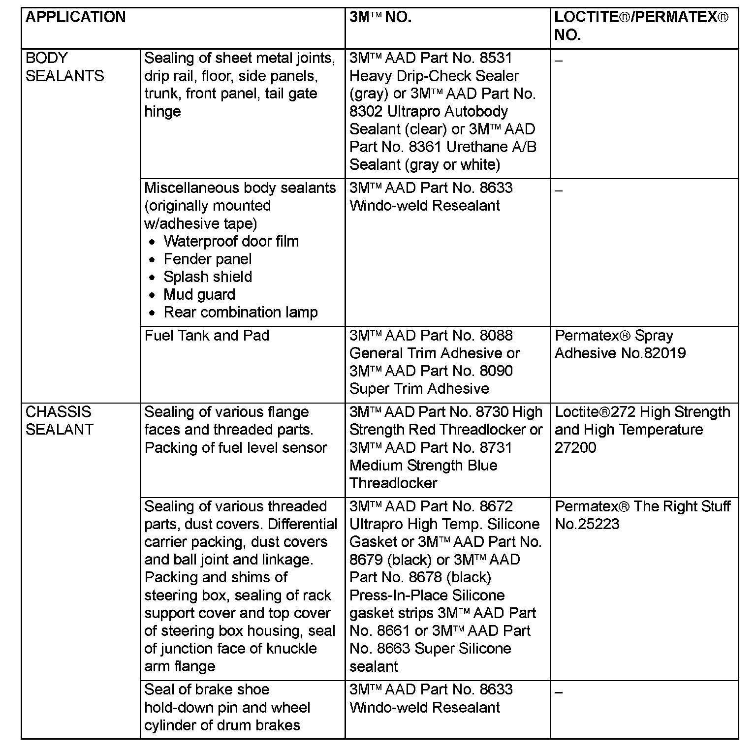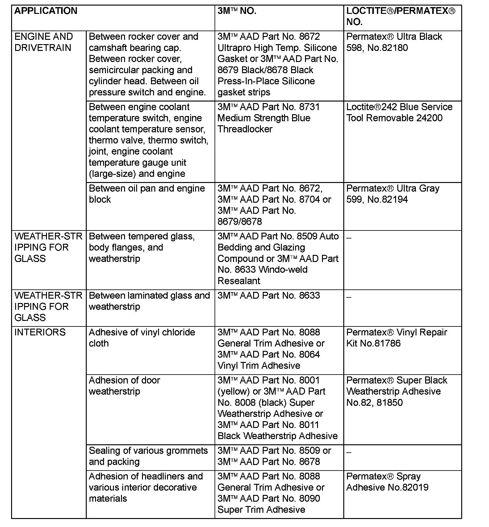 MAIN SEALANT AND ADHESIVE TABLE (PART 3):