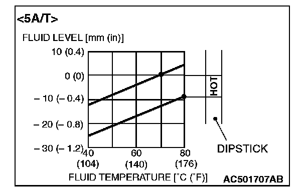 NOTE: If it takes some amount of time until the transmission fluid reaches its normal operating temperature [70 -80°C (158 -176°F)], check the transmission fluid level by referring to the left diagram.