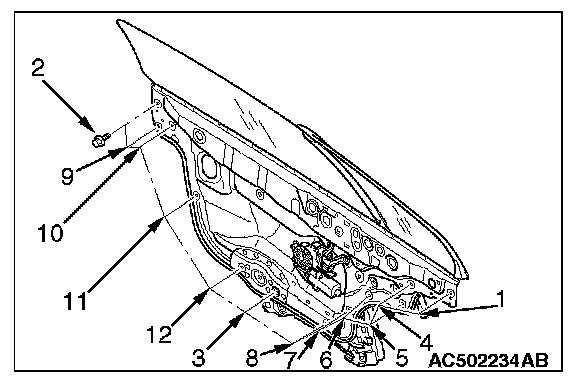 Install the door window module assembly in the order shown.