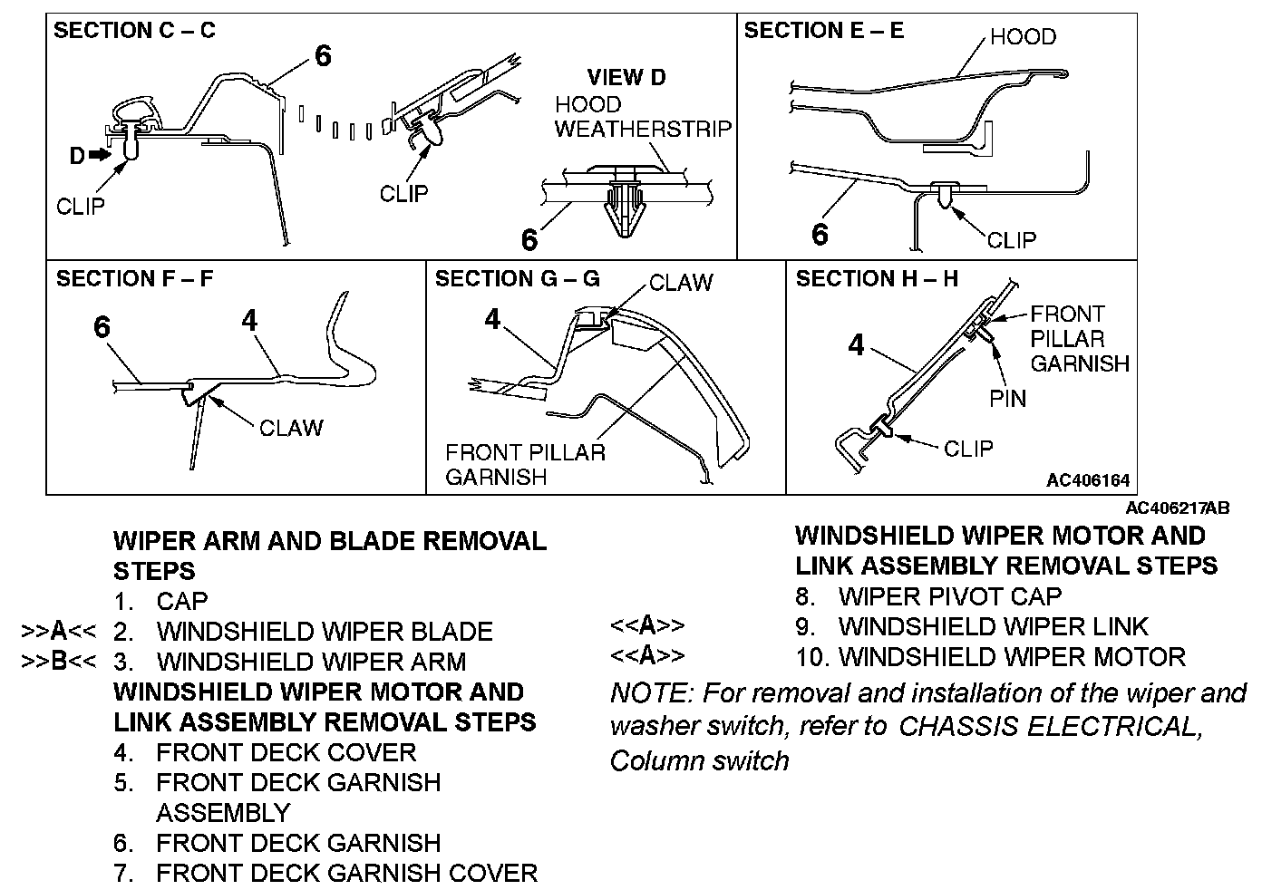 [[A]] WINDSHIELD WIPER LINK/WINDSHIELD WIPER MOTOR REMOVAL