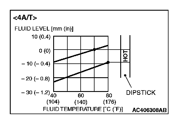 NOTE: If it takes some amount of time until the transmission fluid reaches its normal operating temperature [70-80°C (158-176°F)], check the transmission fluid level by referring to the diagram at left.