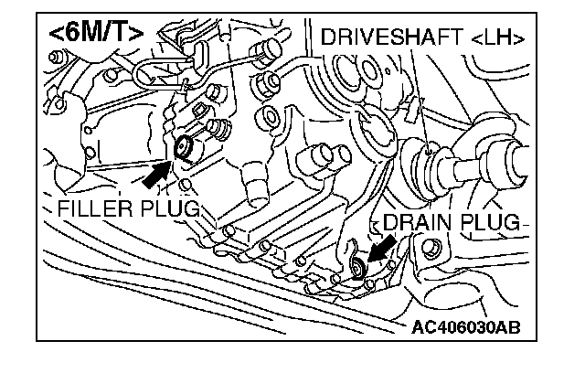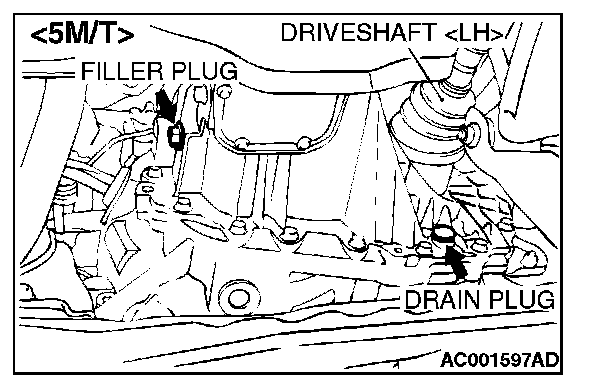 TRANSMISSION OIL REPLACEMENTTransmission Drain & Refill Locations [5M/T]: