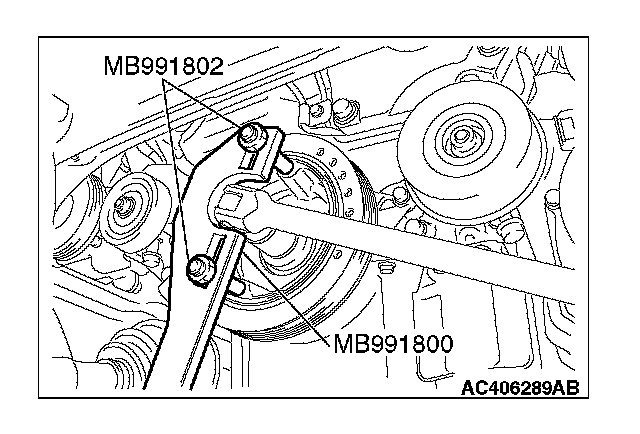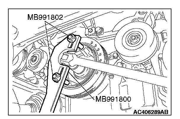 Use special tools MB991800 and MB991802 to remove the crankshaft pulley from the crankshaft.