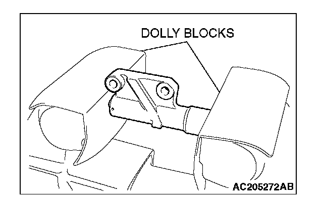 (1) Place two dolly blocks in a vice as shown in the illustration, and then place the auto-tensioner in the vice.