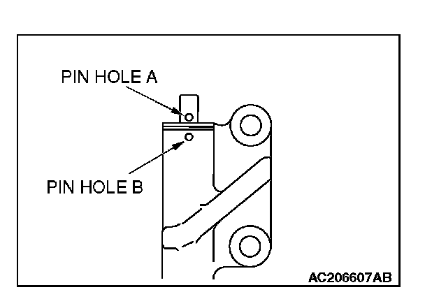 (2) Slowly compress the pushrod of the auto-tensioner until pin hole A in the pushrod is aligned with pin hole B in the cylinder.